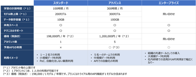 ■提供プラン : Prediction Oneアドバンスプラン以上に搭載(※アドバンスプラン以上でかつAPI機能を契約している場合は無料で利用できます)