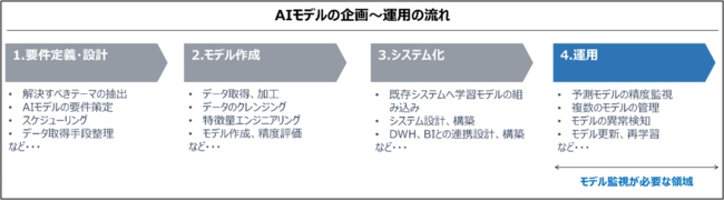 「Prediction One」は、今回新たに「モデル監視機能」を追加することで、AIモデルの企画から、開発、システム化、モニタリングまで一気通貫で可能となり、さらなるAIの開発加速とビジネスにおける活用を支援します。
