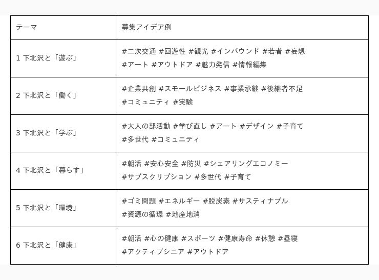 「ROOOT(ルート)」の第一弾は多様な文化が交わり、絶えず自由に変わり続ける下北沢を舞台に、「遊ぶ」「働く」「学ぶ」「暮らす」「環境」「健康」の6つのテーマを設定し新たな価値提供をしてまいります。