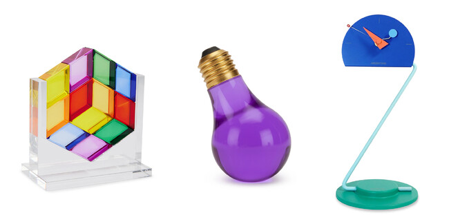 ポストモダンデザイナー、ニコライ・カネッティが1984年に考案したオブジェです。6色の透明なアクリルブロック12個からなるインタラクティブなキューブが、透明のアクリルベースに置かれています。ブロックは動かせるので、好きなように組み合わせをアレンジでき、照明で変化するカラーディスプレイはユニークかつ無限に楽しめます。