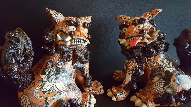 漫画織部シーサー対 W×D×H 阿 32.0×26.2×29.2cm 吽 32.0×26.0×30.4cm 税込 440.000 円