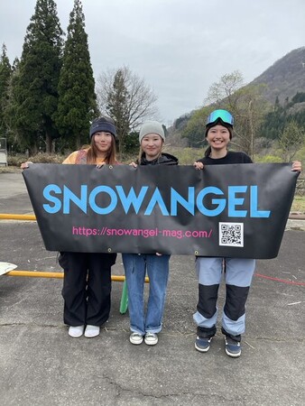 今回のイベントには国際スノーボード&スケートボード専門学校からは6名の学生が参加し、アクションスポーツ専攻科1年の山下瑠華さん(写真中央)が女性スノーボード雑誌「SNOW ANGEL」様よりお声がけをいただき、2024-2025の1年間アンバサダーとして活動することが決まりました。