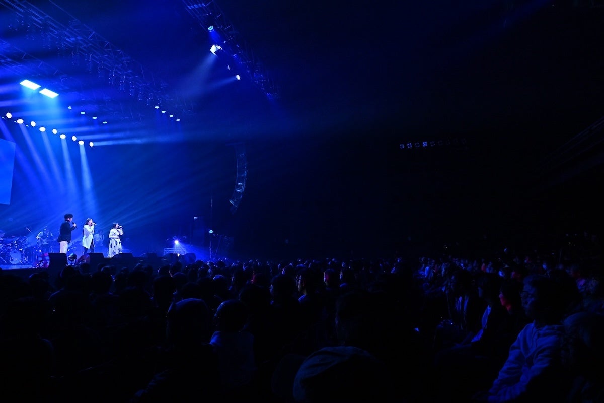 バンドセッションに導かれるようにMCの2人がステージへと再び登場。会場からは大きな拍手が起こる。黒沢の「生バンドでの本格的なライブは初めて?」という質問に「はい。お客さんとバンドメンバーとの板挟みになっている感じ」と、中西“独特”の初手が決まり、会場の空気が和んでいく。「第2部」1組目のゲストとして呼び込まれたのは、Little Glee Monsterのかれんとmiyou。モータウン調のブライトチューン「Pop Like A Star」をカラフルなライティングの中で披露した。第11回(2024年11月放送)に出演したかれんとmiyou。出演後の反響がすごかったと語るかれんは、黒沢ファン、中西ファンからも反応があって嬉しかったと明かす。番組出演時に披露したセッション曲に“ひとスパイス”加えてお送りする“リバイバルセッション”では、かれんと中西で、三浦大知の「ふれあうだけで〜Always with you〜」、miyouと黒沢でダニエル・シーザー&H.E.R.の「Best Part」を続けて歌唱した。歌う前に「今日のアルノちゃんのフェイクは前よりパワーアップしてそう」と期待を寄せていたかれん。歌唱中、中西が歌うパートで、同じように口を動かしながら、幸せそうな笑顔を浮かべる姿が印象的だった。続いて披露された「Best Part」では、黒沢とmiyouが魅せた。miyouは、昨年の番組出演時に“もう1回やりたい”って冗談で言ったら本当になったと、歌唱前に話していたが、その第11回の収録時よりも艶っぽさ、そして滑らかさが増した印象。曲の後半、お互いの歌声を探りながら、ロングトーンでせめぎ合う。バンドサウンドが2人に引っぱられて、サウンドのレイヤーを重ねていく。セッションとデュエットソング、二つの真骨頂を同時に発揮し、そのエネルギーに観客の気持ちが高揚していく。歌唱後「終わらないかと思った」とmiyouの第一声。かれんが「セッションしてましたね!」と感想を述べる。miyouは「止まらんかった」、黒沢は「お互いロングトーンでいっちゃうと、戻れないよね」と、とても楽しそうであった。今回のリバイバルセッションは、過去の再現ではない。番組の積み重ねを踏まえた上で“今、同じメンバーでやったらどうなるか”を体現するスタンスなのだと思った。