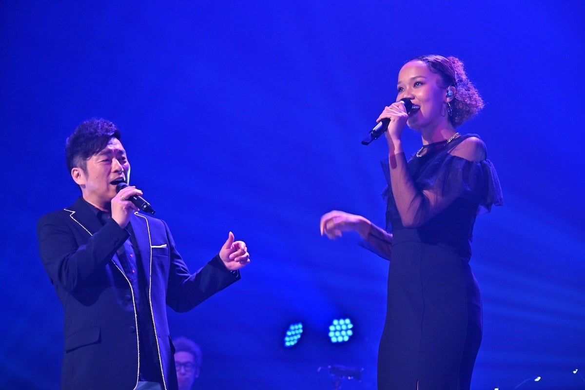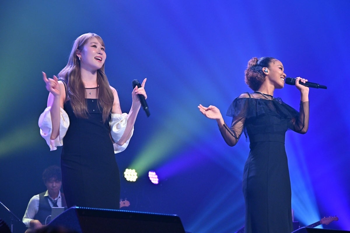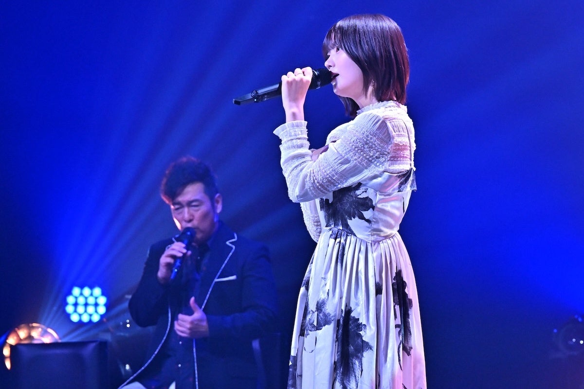 かれんとmiyouがステージを後にし、中西のソロ歌唱へ。ちなみに「Spicy Sessions -THE LIVE-」前半(第1部)では、黒沢が自身のソロ曲「夢みる頃を過ぎても」を歌唱している。「自分が(乃木坂46の)センターとして立たせてもらっている曲の中でも、好きな曲。バンドの皆さんのアレンジで、またお聴かせできたら」と、中西が選んだ曲のタイトルを告げる。「思い出が止まらなくなる」(乃木坂46)。タイトルだけで、あちこちから歓喜の声が上がった。中西は<星空に届きそうな>という歌詞に合わせて、手を空に向けて差し出すようなジェスチャー。言葉を一音一音、確かめるように置いていく。歌詞の余韻が、客席の隅々まで行き渡っていく。先述したセッションでの柔軟性や、声量のコントロールとはまた異なる、ソロならではの集中力が際立つ瞬間であった。初回放送から半年間ほど、黒沢からのリクエストに対して中西は、教えてもらった通りに頑張る、という取り組み方だったように思う。2年を経て彼女は、自分のオリジナリティーを求める表現の探求者になっていると感じた。