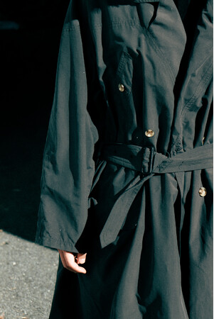 一見するとオーバーサイズのトレンチ?のような、はたまたダブルのチェスター?のようなシルエット。
