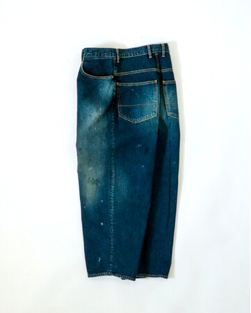 ANCELLMが得意とする加工は、奥行きとグラデーションの良い塩梅を表現するのに何度もテストを繰り返し、濃色を残しながらも着用を重ねていく事でどんどん色合いや風合い そして深みすら増していく、まさに「経年変化を自らデザインする」為の唯一無二の一本に仕上がっている。