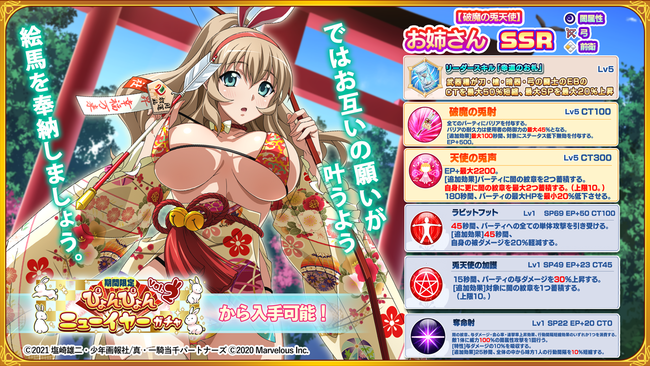 本日開始の「ぴょんぴょんニューイヤーガチャVol.2」では、新たに「【破魔の兎天使】お姉さん」(CV: 堀江由衣)」が登場。