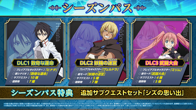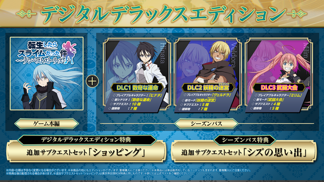 ・※「DLC1 数奇な運命」「DLC2 妖精の迷宮(ラビリンス)」「DLC3 武闘大会」をプレイするには、 「転生したらスライムだった件 テンペストストーリーズ」本編をクリアする必要があります。