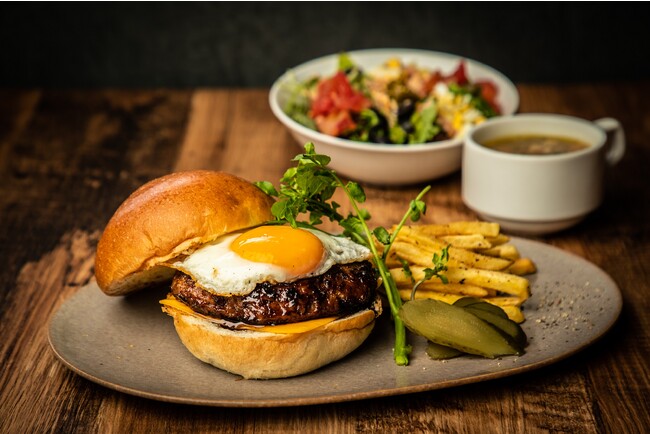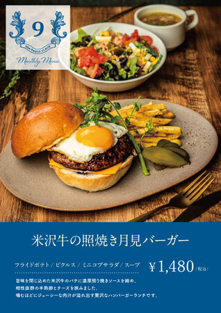 ジューシーな米沢牛に“とろ〜り卵”を合わせた贅沢バーガーが登場!9月限定ランチ『米沢牛の照り焼き月見バーガー』販売