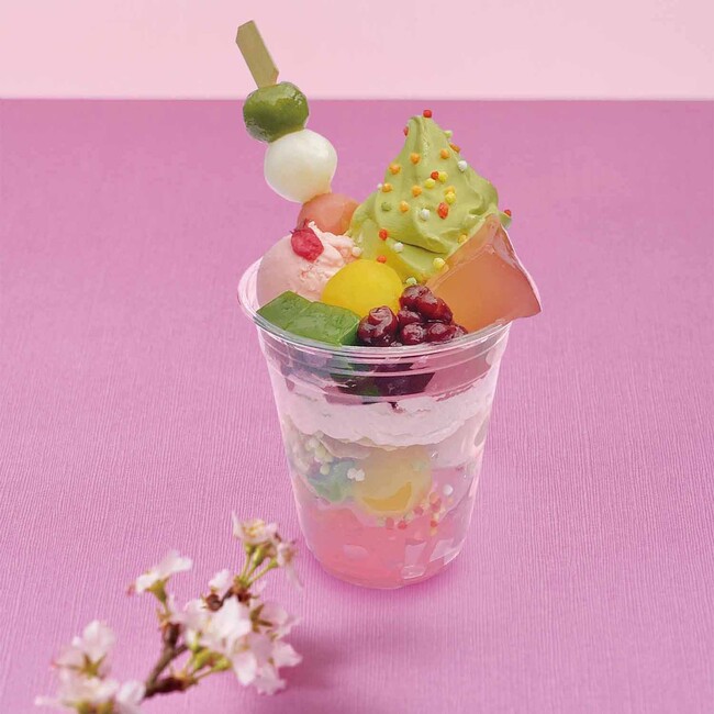 ◇文の助茶屋/花見日和(1カップ)1,210円 ほのかな桜の香りのアイスにわらび餅がアクセント。