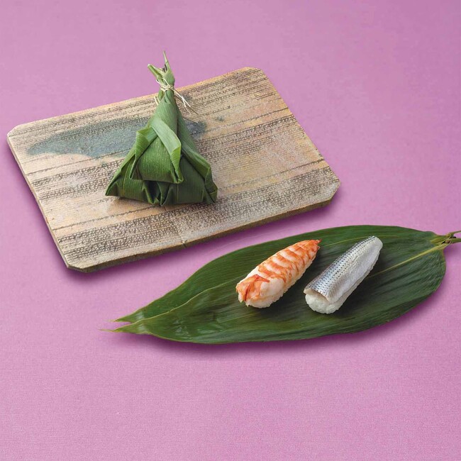 ◇いづう/笹の葉寿司/車海老(1本)756円 画像左 小肌(1本)648円右 〈実演〉