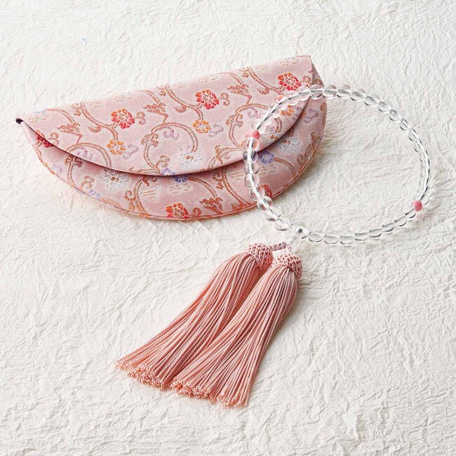 ◇安田念珠店(京念珠) 水晶女性用念珠 インカローズ入(半月念珠袋付き)13,200円[限定20セット]