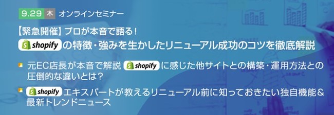 【トランスコスモスオンラインセミナー】【緊急開催】プロが本音で語る!Shopifyの特徴・強みを生かしたリニューアル成功のコツを徹底解説を9/29(木)に開催
