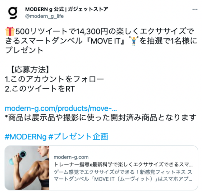 【14,300円の最新科学で楽しくエクササイズできるスマートダンベル『MOVE IT』をプレゼント!】MODERN gの公式Twitterで毎日ギブアウェイキャンペーン中!