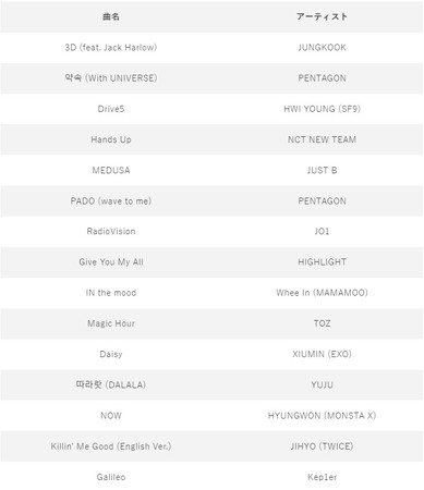 株式会社ゲームオン[本社:東京都千代田区、代表取締役:李 一守(リ・イルス)]が運営しておりますK-POPアイドル応援アプリ『IDOL CHAMP』内の投票機能と連動した日本国内初のラジオ番組「IDOL CHAMP presents POP-K TOP10 Friday」(TOKYO FM)の10月総合投票数でJUNGKOOKの「3D (feat. Jack Harlow)」が月間MVPを獲得しました。併せて上位15曲は「Spotify」の番組公式プレイリストにて公開しました。