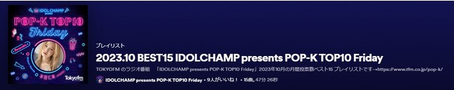 ラジオ番組「IDOL CHAMP presents POP-K TOP10 Friday」10月月間ランキング発表!MVPはJUNGKOOK!上位15曲は「Spotify」番組公式プレイリストにて公開