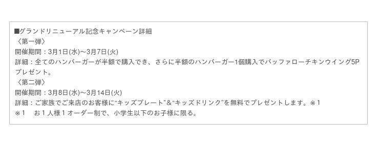 さらに、お子様向けに選べるキッズメニューとして「キッズバーガープレート」や「キッズオムライスプレート」を新発売いたします。また、今回のグランドメニューリニューアルを記念して2週連続のスペシャルキャンペーンを実施。第一弾は「全てのハンバーガー半額」、第二弾は「キッズプレート無料」を実施します。