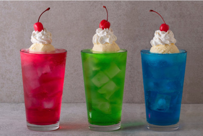 カラフルな色合いが目を引く3色展開のクリームソーダ。