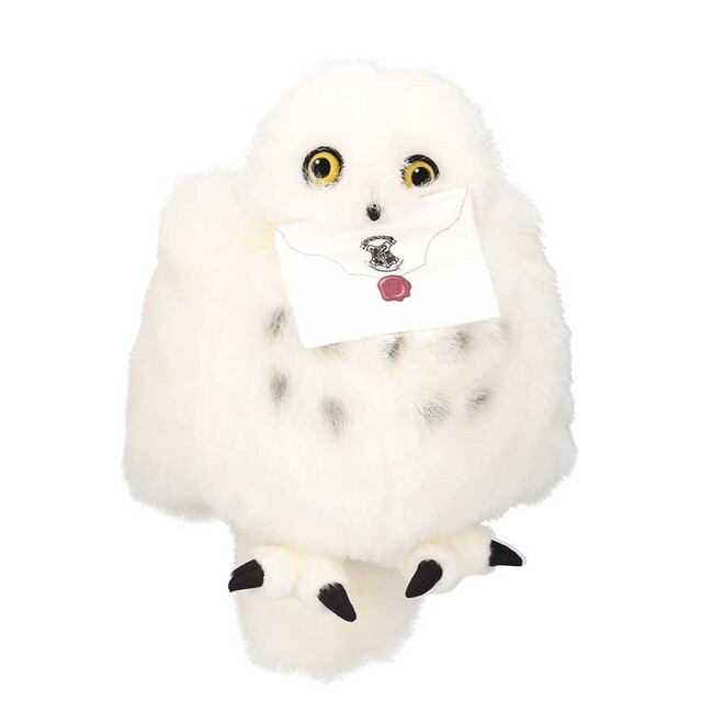 首をぐるっと回したり、羽をぱたぱたと動かして遊べる、ヘドウィグのぬいぐるみ。ぬいぐるみの底面から手を入れることができ、羽を動かせる他、中の芯棒をまわすことで首がぐるっと回転します。ハリーへの宛名があしらわれた、マグネット仕様のホグワーツからの手紙のパーツが付属し、ぬいぐるみの口元に取り付けが可能です。ヘドウィグがそこにいるかのような気分が味わえる、「ハリー・ポッター マホウドコロ」オリジナルの商品です。