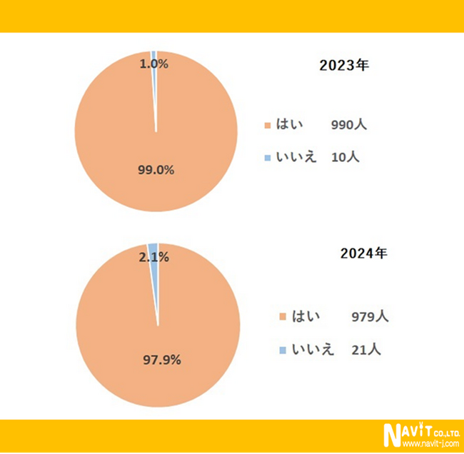 今年の調査では、1,000人のうち979人が夏にめん類を「食べる」と回答。「食べない」人は21人で昨年に比べると2倍に増えていますが、誤差の範囲内と言えるでしょう。