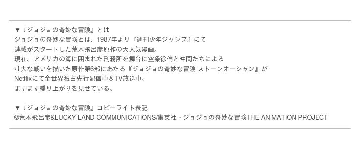 【『ジョジョの奇妙な冒険』コラボ概要】