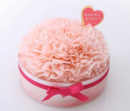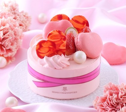 自家製クリームにフランス産のフレーズピューレを混ぜ込み、飾りも母の日らしく仕上げました。