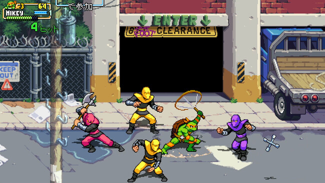 タートルズのCV(音声:US版)は当時のオリジナルキャストで収録!懐かしいアクションでありながらも画期的なゲームプレイを特徴とし、お気に入りのタートルズと共に繊細なピクセルアートで描かれる世界で大暴れできます。