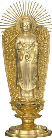 ↑●純金製阿弥陀如来立像各種(西型、舟型、東型)*写真は西型