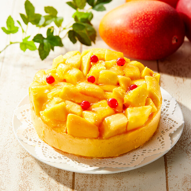今回は、旬のマンゴーをふんだんに使い、暑い夏にもおうちで楽しめるスイーツをご用意しました。濃厚な味わいの「アルフォンソマンゴー」と、豊かな香りと甘みが特徴の「アップルマンゴー」の2種の美味しさを楽しめるマンゴー尽くしのオリジナルケーキです。太陽の恵みをいっぱい浴びた完熟フルーツの味わいを是非ご賞味ください。