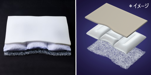 2層目は流動性と弾力性を兼ねたエラストマーパイプを使用。頭を置くと自然と頭から首の形にフィットし、首のすき間を埋めて支えてくれます。