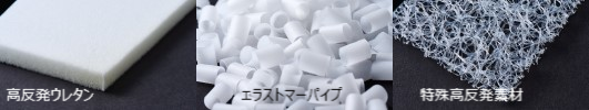 中身:ウレタンフォーム、エラストマー(ポリオレフィン系樹脂)、3Dファイバー(ポリオレフィン系樹脂)