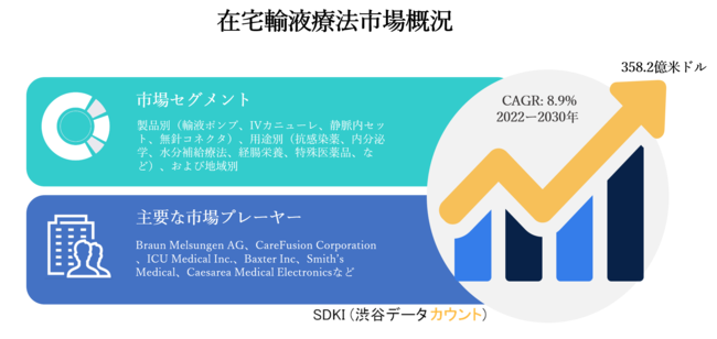 SDKI Inc.は、「在宅輸液療法市場ー予測2022ー2030年」新レポートを 2021年12月20日に発刊しました。この調査には、在宅輸液療法市場の成長に必要な統計的および分析的アプローチが含まれています。レポートで提供される主要な産業の洞察は、市場の既存のシナリオに関する読者に市場の概要についてのより良いアイデアを提供します。さらに、レポートには、市場の成長に関連する現在および将来の市場動向に関する詳細な議論が含まれています。