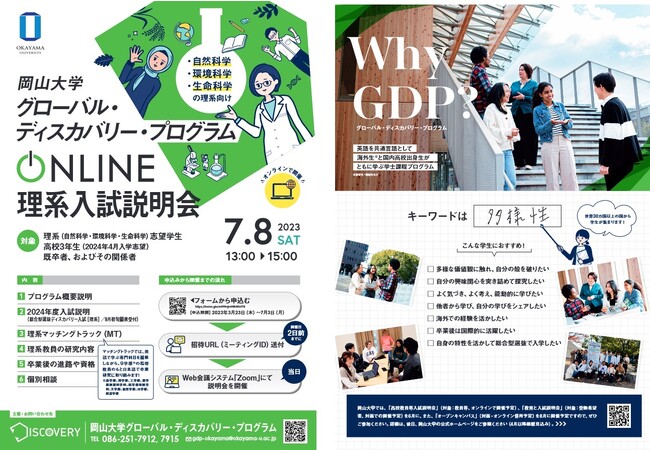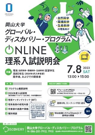 【岡山大学】グローバル・ディスカバリー・プログラム(GDP)オンライン理系入試説明会〔7/8,土 オンライン開催〕