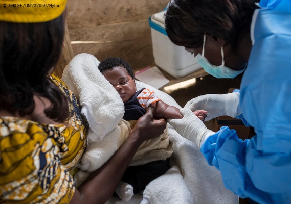 「予防接種が命を守る取り組みであることに変わりはありません。予防接種活動を継続することは絶対的に不可欠であるものの、COVID-19に対する防護および予防手段は講じる必要があり、医療従事者がその任務を遂行するための訓練を受け、必要な装備を持っていなければなりません」と北キブ州の州都ゴマ(Goma)のユニセフ地域事務所代表、フレデリック・エミリアンは述べました。