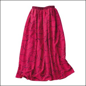 艶やかに、しなやかに・・・柄と素材の美しさを活かした大人の余裕が漂う華やかさ一見、お花のように見える大柄プリントは、実は蝶々。あえてふんわりギャザースカートで、柄を崩し洗練度をアップ。リュクスな装いを叶えるスカートながら、サテン地で切り替えたウエストゴムで楽にはける仕様にしました。