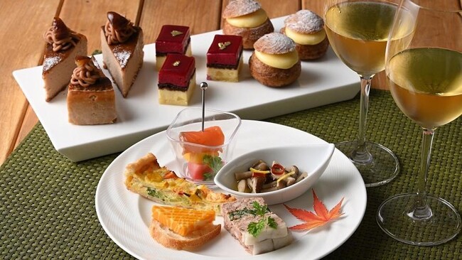 もみじをテーマに装飾されたクラブラウンジにて、秋の恵みを使ったスイーツとオードブルをお楽しみください。
