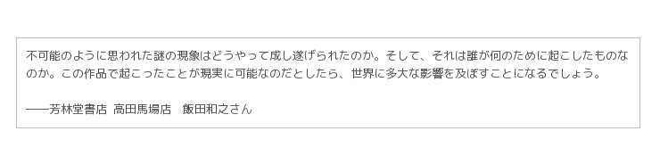「彼女は計算して奇跡を起こす。」――圧倒的スケールをもって描かれるミステリ長編だ。