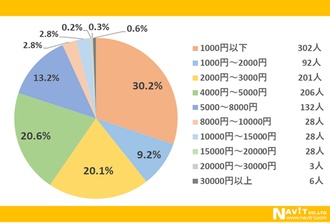 「1回の施術でかかる料金はどのいくらですか?」という質問については、「1000円以下」が30.2%、「4000円〜5000円」が20.1%、「2000円〜3000円」が9.2%と続く結果になり、一回の施術で5000円以内で抑えたい人が多いことがわかりました。
