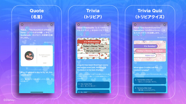 ※人気のキャラクターや名言が日替わりで登場。水曜・日曜はトリビア情報も配信します。