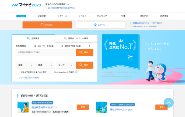 2023年卒業予定学生のための就職情報サイト『マイナビ2023』 3月1日(火) 企業エントリー受付スタート