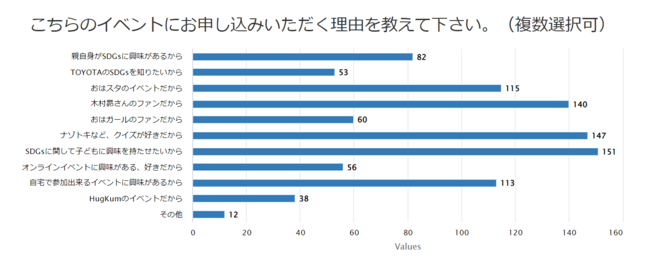 今や、教育カリキュラムにも多く取り入れられているSDGsの概念。以下は参加者から事前に「イベント参加への同期」を伺ったアンケートですが、親御さん自身も興味を持ち、子どもにも関心を持ってもらいたいという動機が多数みられます。