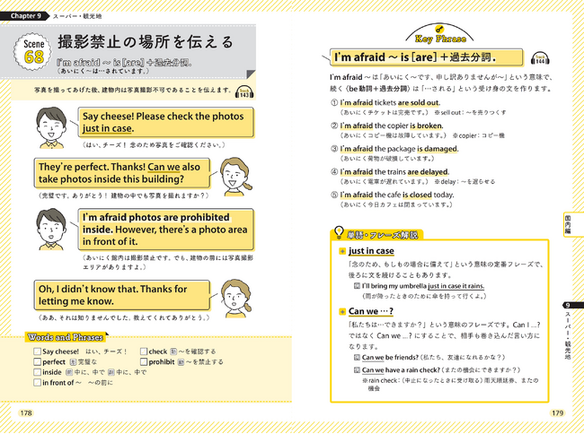本書は海外編と国内編の二部構成で、誰もが遭遇するような厳選の80場面(Scene)をお届けします。