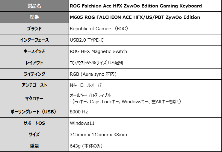 Republic of Gamers、プロゲーマーZywOoとのコラボゲーミングキーボード「ROG Falchion Ace HFX ZywOo Edition Gaming Keyboard」を発表