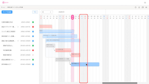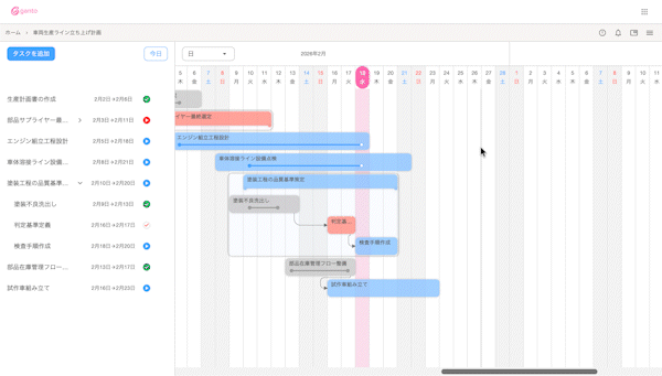スキルや経験に関係なく、これまで表計算ソフトで管理してきた方でも移行しやすい設計としています。画面遷移を極力なくし、一画面内でタスク追加から期間設定、依存関係の設定まで完結できる構造により、直感的に操作できることを目指しています。[画像2: https://prtimes.jp/api/file.php?c_id=112&t=animationGifImage&f=4597d1d4a2911c99f4486bfaf9224459.gif ]