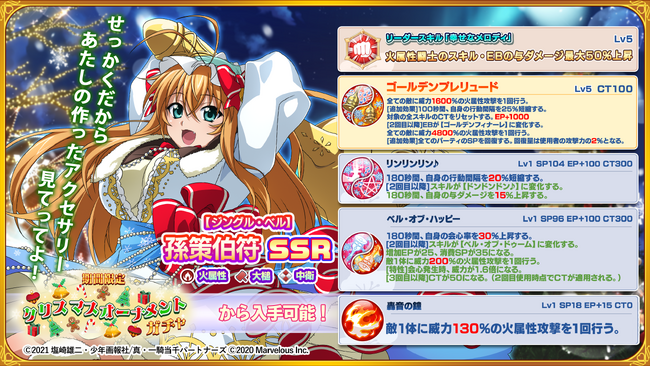 本日開始の「クリスマスオーナメントガチャVol.1」では、新たに「【ジングル・ベル】孫策伯符」(CV:浅野 真澄)が登場。