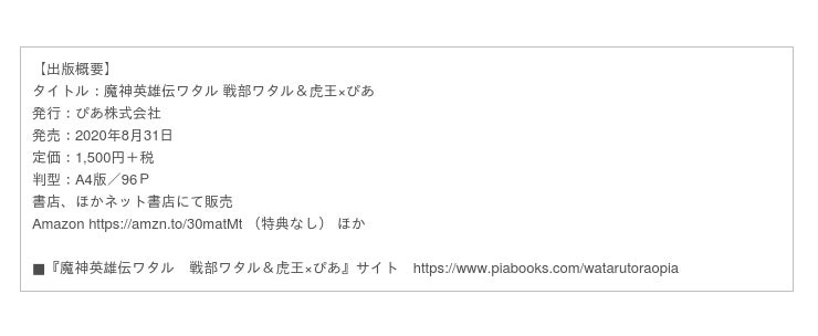 ■『魔神英雄伝ワタル 戦部ワタル&虎王×ぴあ』サイト https://www.piabooks.com/watarutoraopia