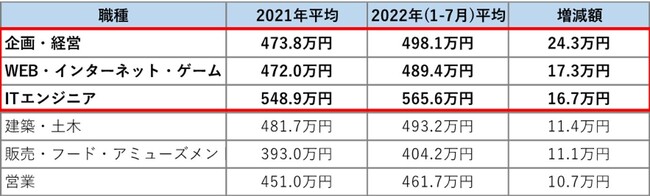 <2022年1-7月平均初年度年収>