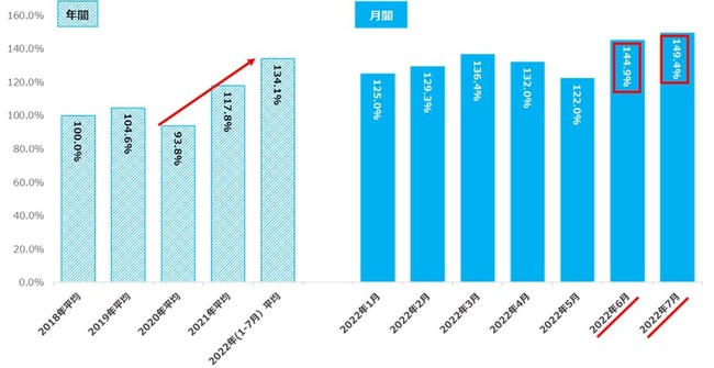 2022年1-7月の求人件数は2018年平均比134.1%。企業の採用意欲が上昇【図4、5、6】