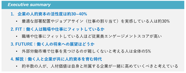 人的資本経営に関する働く人の意識調査(2022)企業の人的資本の活性度は約30〜40%にとどまる―働く人と企業が、共に人的資本を育む時代へ―