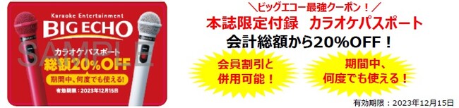 本誌限定付録は、会計総額から20%引きになるカラオケパスポート。35周年を記念し、期間中何度でも使えるお得なパスポートが付録になりました。